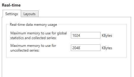 The “Maximum memory to use for global statistics and types in graph” field and the “Maximum memory to use for types not in graph” field are used to limit the amount of memory used for real-time data.